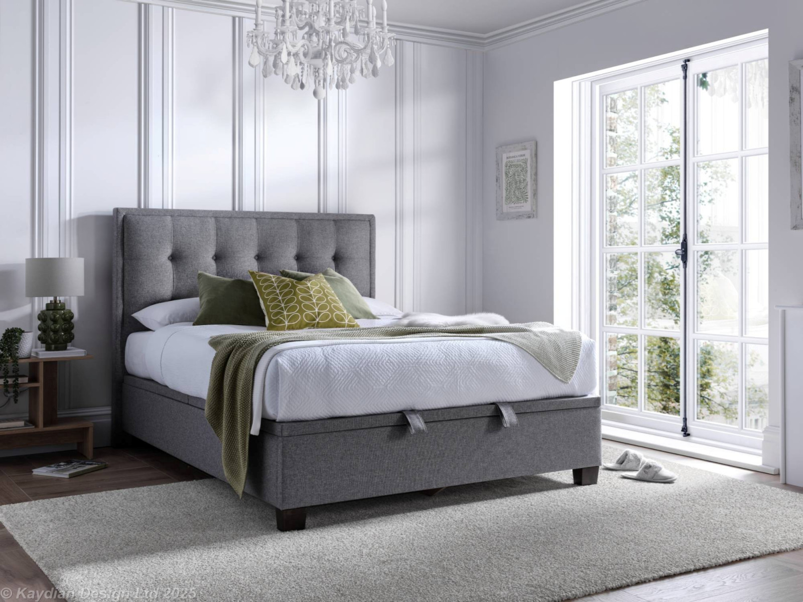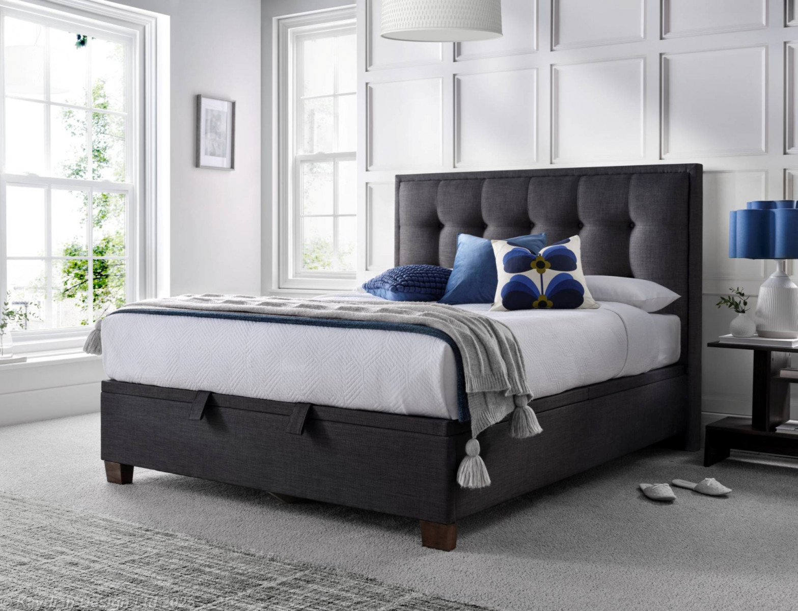 For added customer comfort and durability, the Falfield model is upholstered in Marbella Grey or Pendle Slate fabric and has a platform-style ventilated mattress base that allows fresh air to circulate and aerate the mattress.